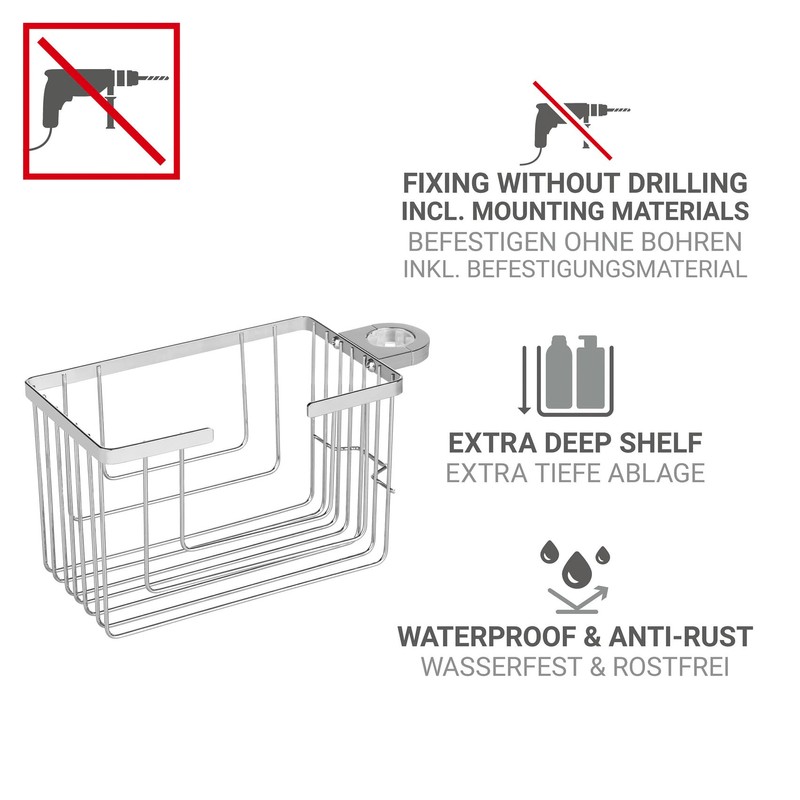 - Shower rail caddy WENKO shower rail caddy made of stainless steel in chrome for optimal storage space in the shower - durable and rust-proof with easy installation without drilling
