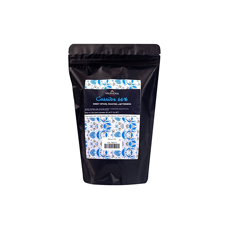 Valrhona Caraïbe 66-Percent-Cocoa Grand Cru Blend Dark Chocolate Feves, 1 Pound