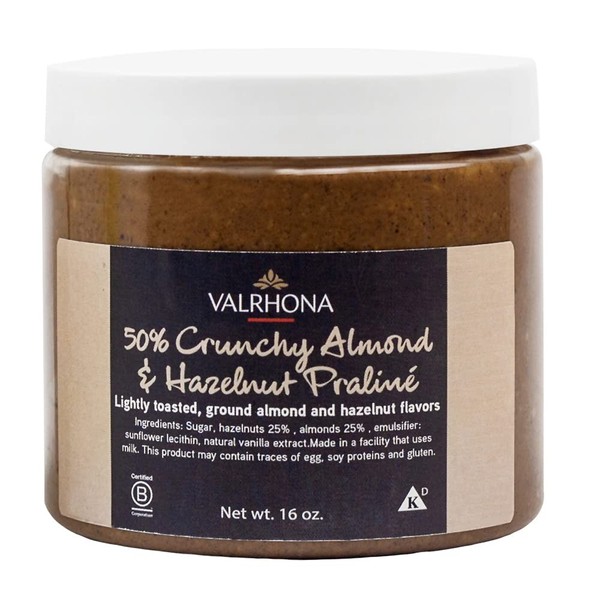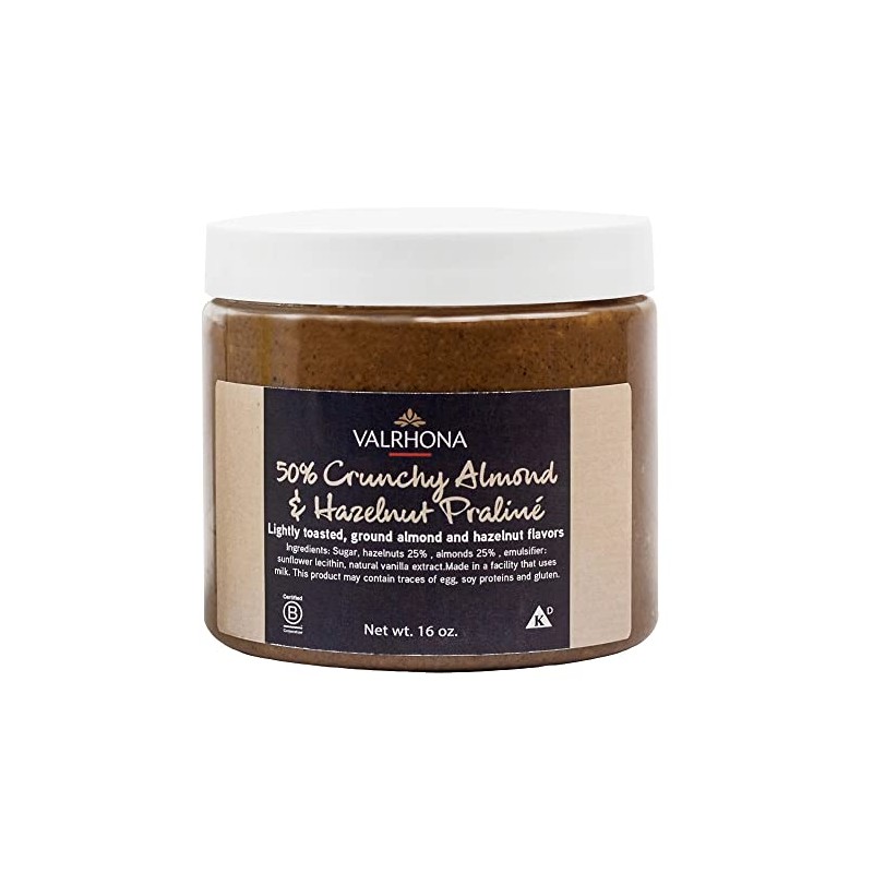 Valrhona Praliné Crunchy 50-Percent-Almond-&-Hazelnut Paste for Ice Cream and Sorbet, 1 Pound