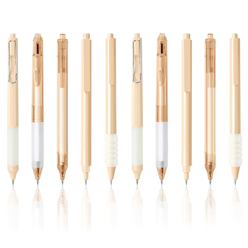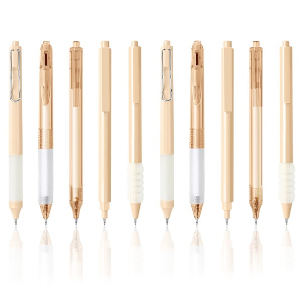 Valtiner 10 Pcs Gel Pens Ballpoint, Retractable Fine Point Pen Set, Smooth Writing Quick Dry 0.5mm Black Ink, Aesthetic Office School Supplies for Journaling Note Taking (Beige)