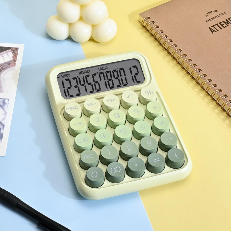 Valtiner Desktop Mechanical Calculator, Cute Big Buttons Calculators with 12 Digits Large LCD Display, Desk Accessories, for Office Home School (Green)