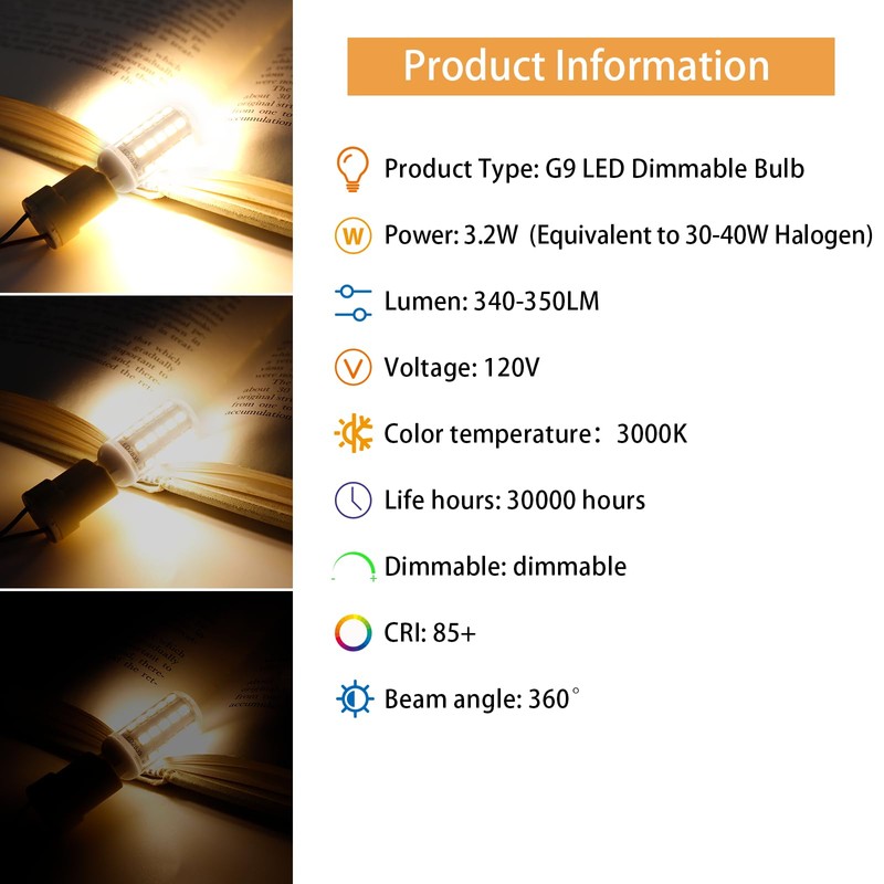 - 💡【Buy with Confidence】G9 LED bulb 3.2w has a lifespan of over 30,000 hours. We have professional customer service. If you have any questions, please feel free to contact us, we will help you solve the problem within 24 hours.