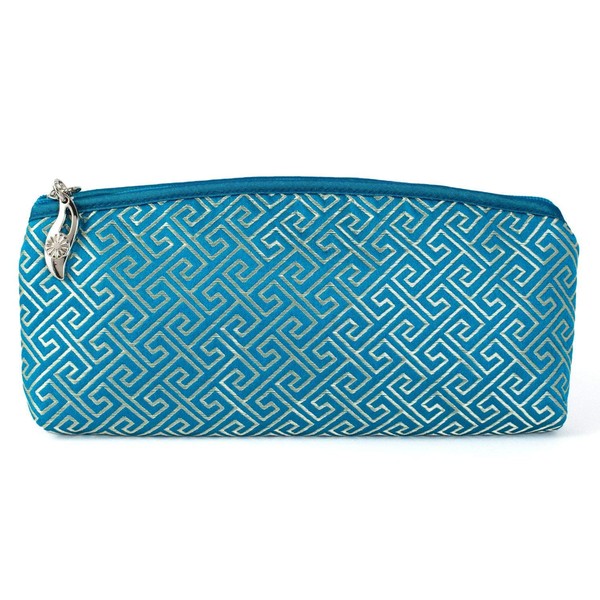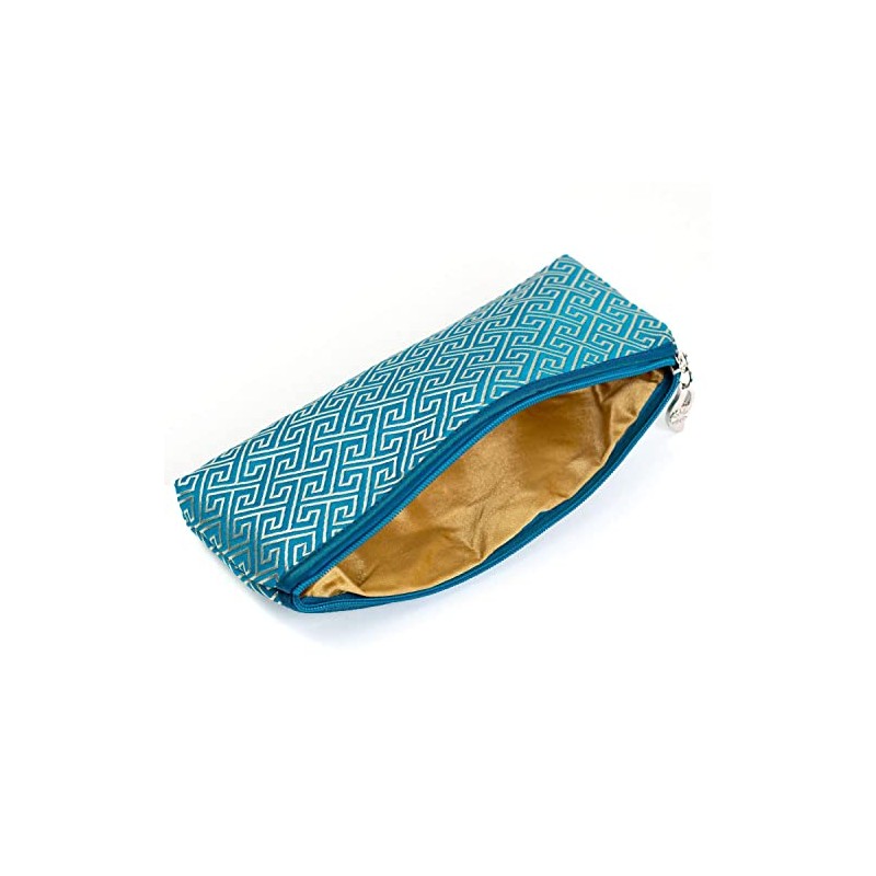 Value Arts Silk Damask Greek Key Teal Zippered Glass Case - Pouch