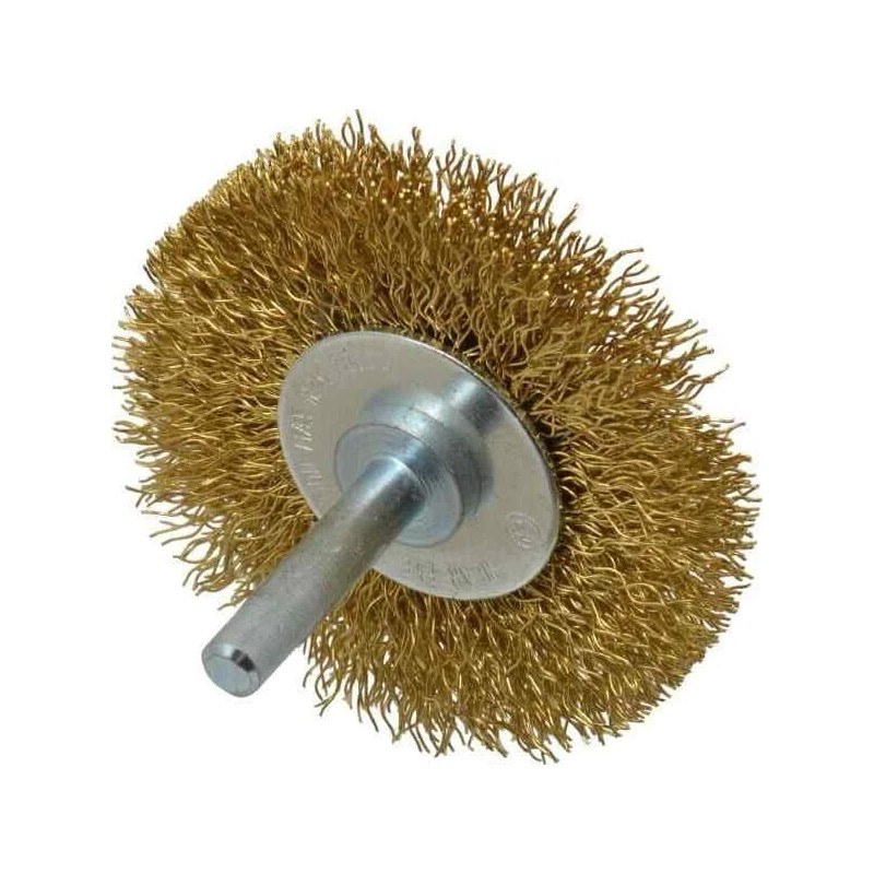Value Collection 2-1/2" OD, 1/4" Shank Diam, Crimped Brass Wheel Brush 3/8" F...