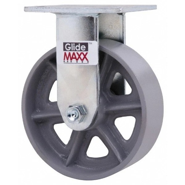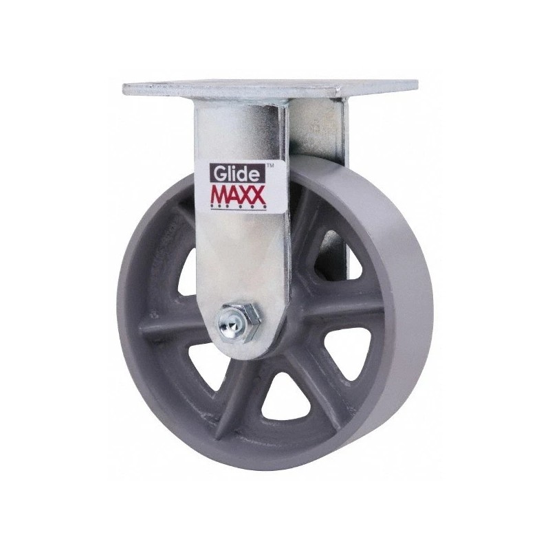 Value Collection Top Plate Mount Rigid Caster: 6" Diam x 2" Wide Semi-Steel Wheel, 7-1/2" OAH