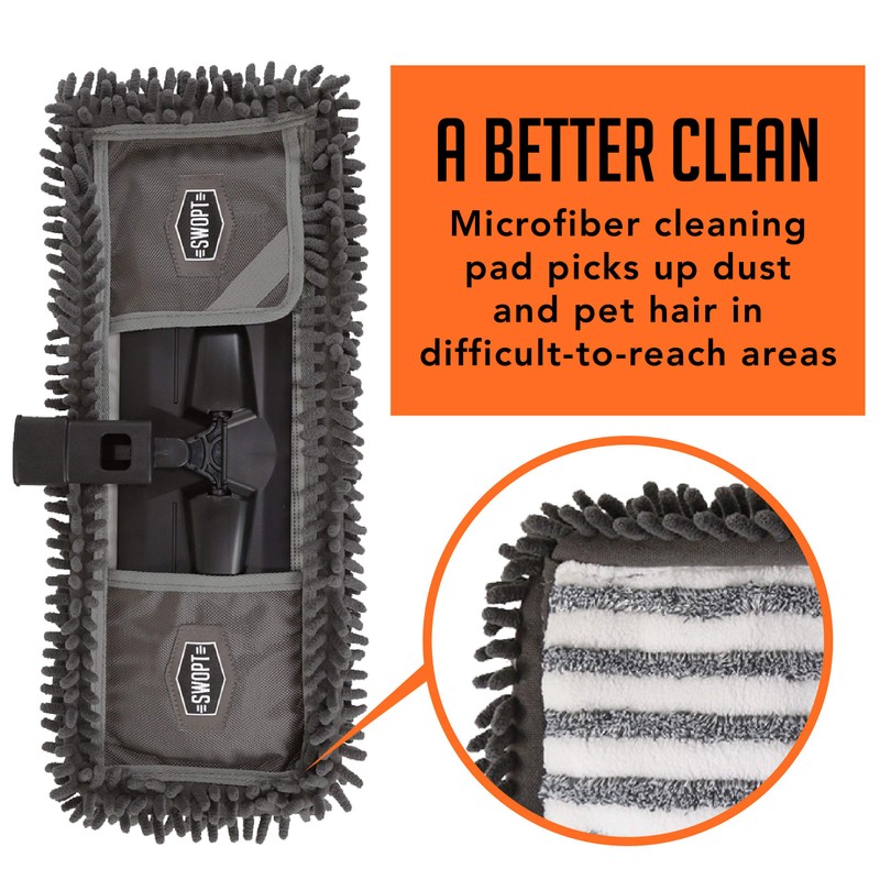 SWOPT’s dual action Microfiber Dust Mop is great for picking up dust and pet