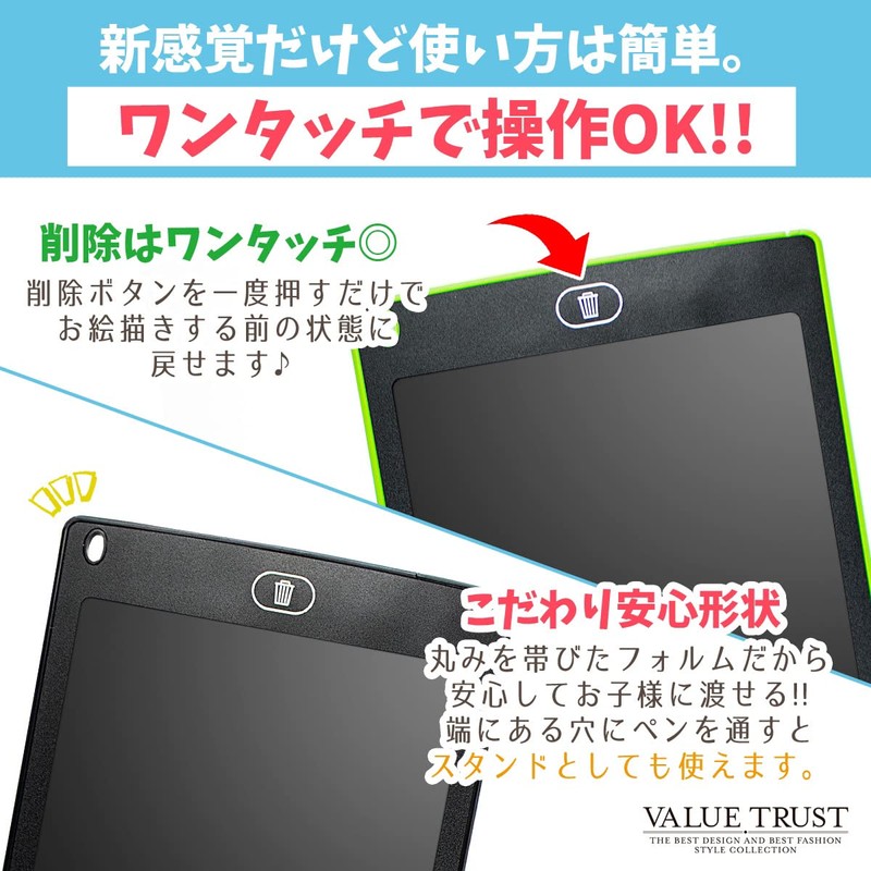 VALUE TRUST Electronic Memo Pad, 8.5 Inch Drawing Board, Memo Pad, Message Board, Thin, Lightweight, Small, Convenient Storage (Green)