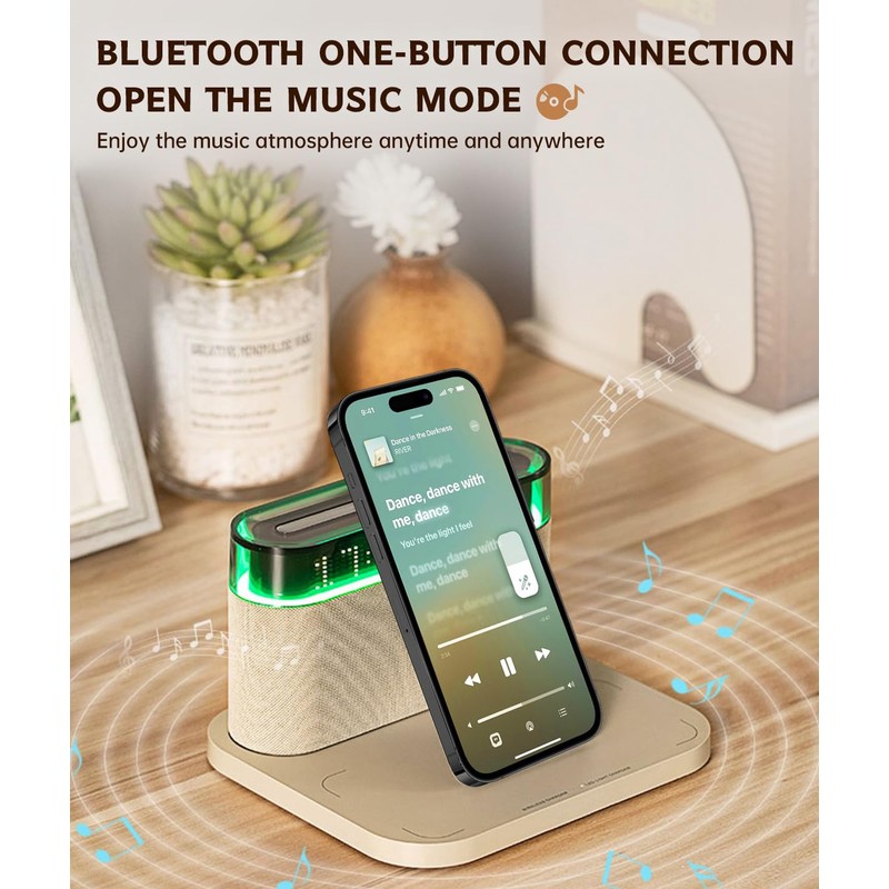 - 【Friendly Notice】1.Speaker and charging pad work independently. The wireless charging pad is compatible with most phones. If charging issues occur, try removing thick phone cases; 2. To maintain a minimalist aesthetic, the settings button is at the speaker's bottom. If this is inconvenient for you, kindly refrain from purchasing.