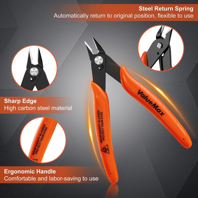 ValueMax Flush Cutters 12 Pack, 5" Micro Precision Side Cutter Pliers Spring-loaded, Small Diagonal Cutters for Jewelry Making, Electronics, Zip Ties, Model Craft