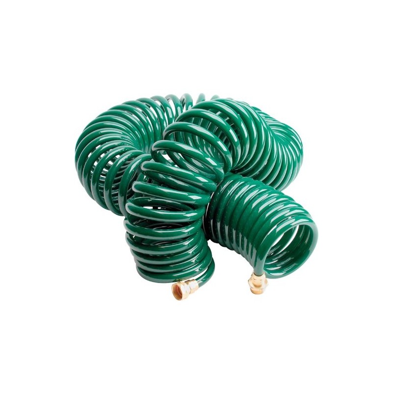 • You never have to coil these hoses. They spring back to a coil when you're finished. • 5/8" OD diameter hose is ideal for high-volume needs and has 125 PSI working pressure and 375 PSI bursting pressure.