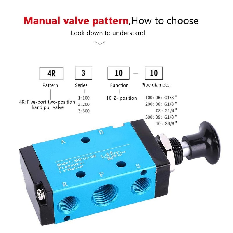 Válvula neumática de 3 vías, 2 posiciones, palanca manual de aire, válvula electromagnética neumática de 1/4 pulg. Control manual Push-Pull 4R210-08