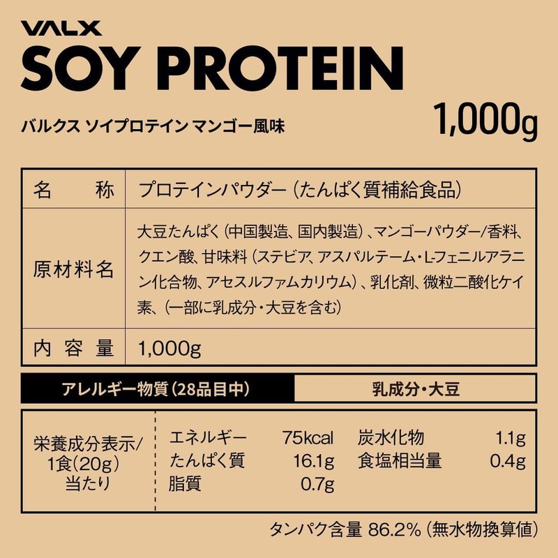 • ✅ [Delicious Soy Protein from VALX] VALX, renowned for its delicious flavor, has developed this soy protein with a focus on ingredients and protein content. With over 84% soy protein from 100% plant-based sources, it's especially recommended for those seeking high-quality protein. 1kg contains 50 servings!