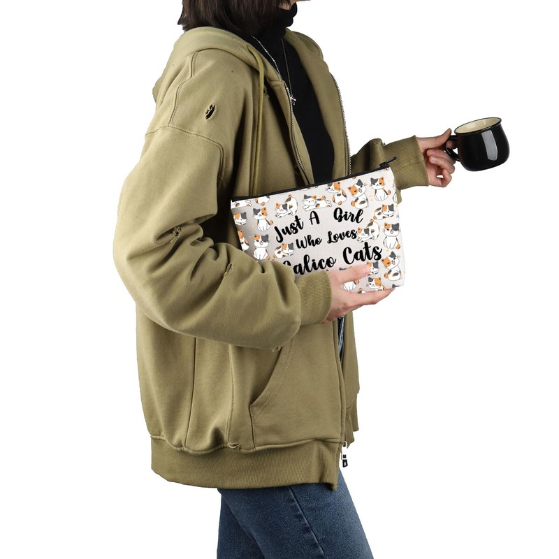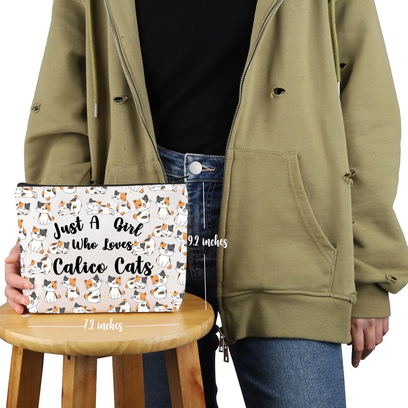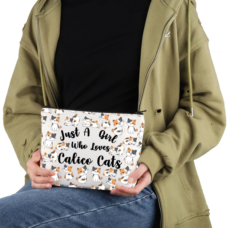 VAMSII Calico Cat Lover Gift Who Loves Calico Cats Makeup Bag Calico Cat Mom Cosmetic Bag Calico Cat Owner Gift (Who Loves Calico Cats M C)