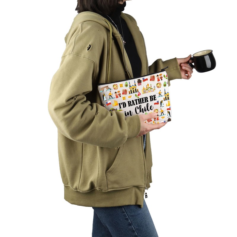 VAMSII Chile Lover Gift I’d Rather Be in Chile Makeup Bag Chile Themed Cosmetic Bag Chile Culture Lover Gift Chile Vacation Trip Gift (Rather Be in Chile M C)