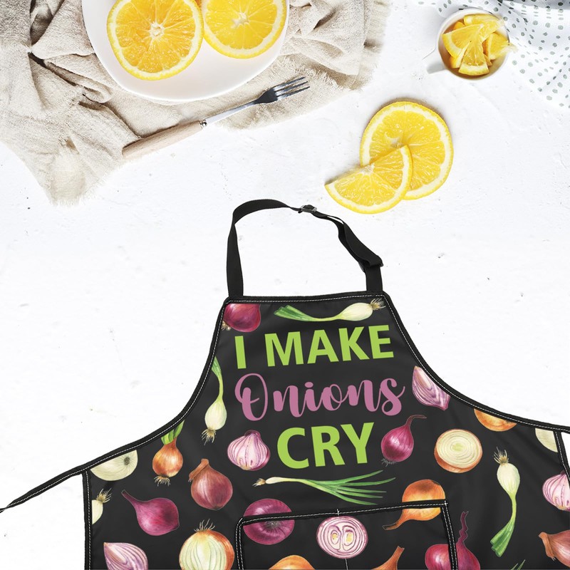 VAMSII Cooking Baking Chef Gift I Make Onions Cry Apron With Pockets Onions Lover Kitchen Gift BBQ Housewarming Gift (Make Onions Cry A C)