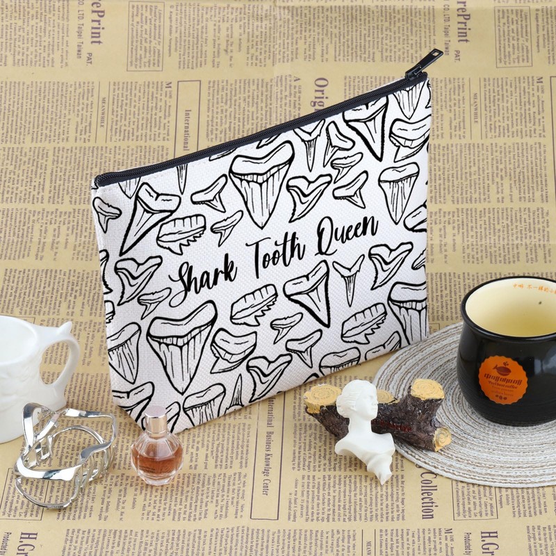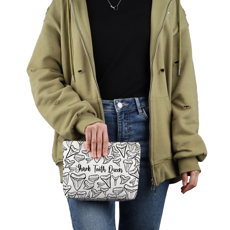 VAMSII Shark Teeth Design Gift Shark Tooth Queen Makeup Bag Fossil Hunter Cosmetic Bag Shark Teeth Lover Merch (Shark Tooth Queen M C)