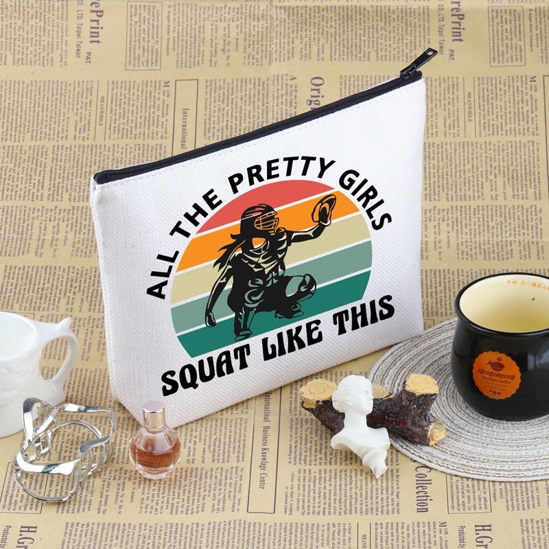 VAMSII Softball Catcher Appreciation Gift All The Pretty G-irls Squat Like This Makeup Bag Softball Catcher Cosmetic Bag Softball G-irl Gift (All The Pretty G-irls Squat Like This M C)