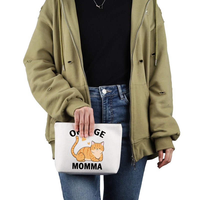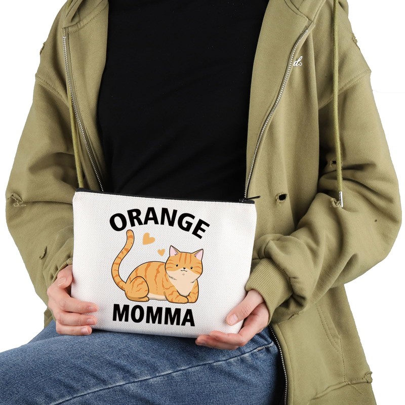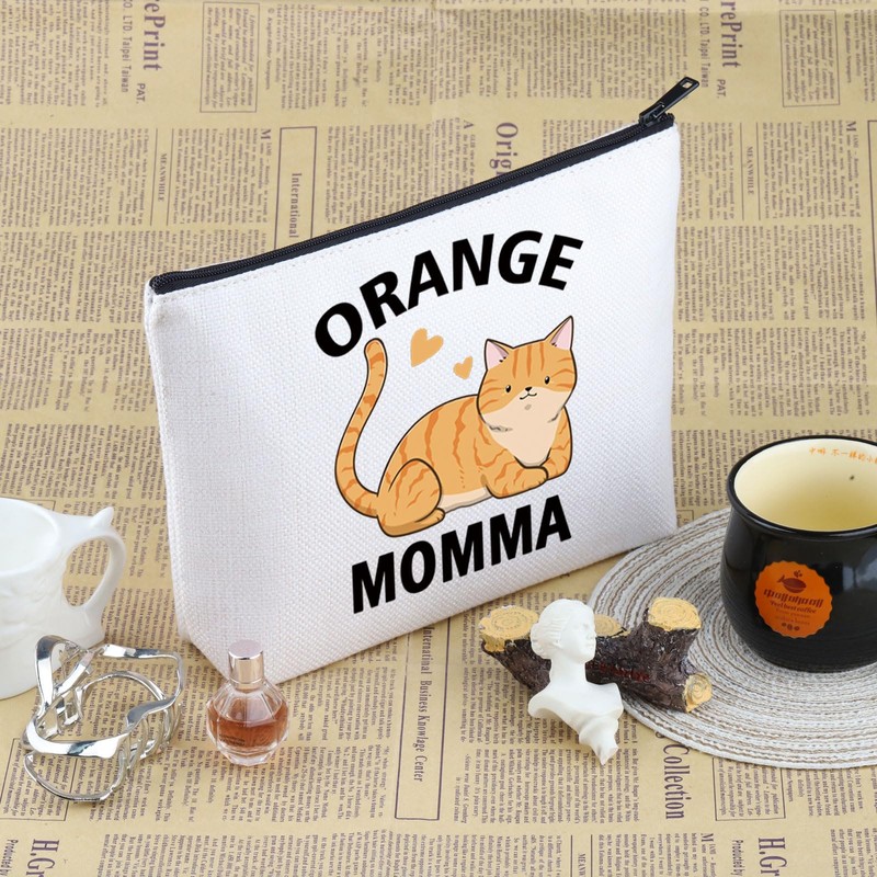 VAMSII Tabby C-at Lover Gift Or-Ange Momma Makeup Bag Or-Ange C-at Mom Cosmetic Bag Or-Ange C-at Owner Gift (Orange Momma M C)