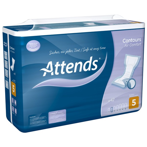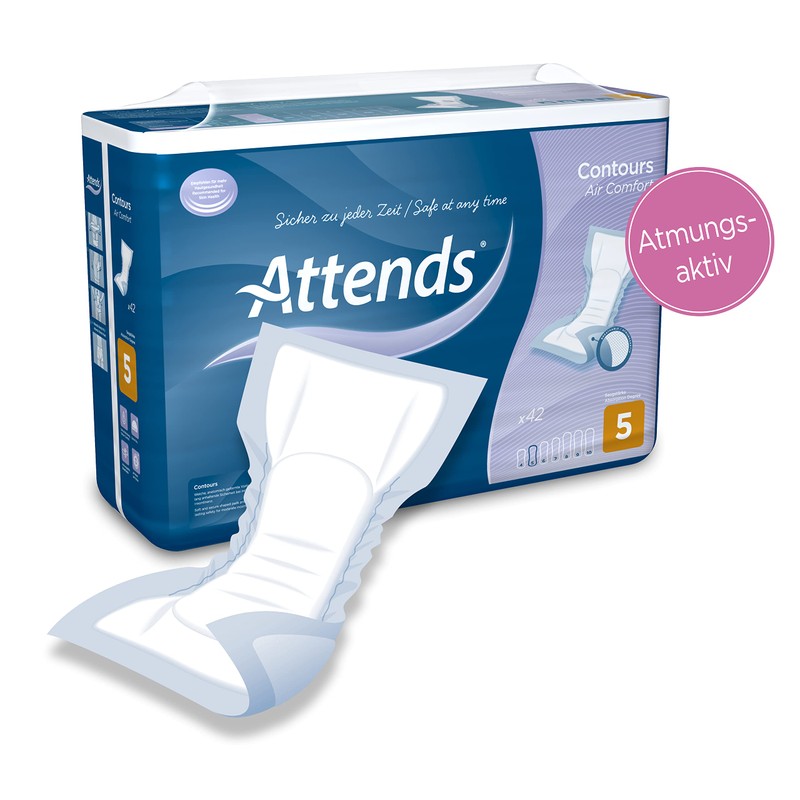 The inlays are attends contours Air Comfort 5 (5 x Pack of 42) with their anatomical form, especially suitable for moderate bladder weakness.