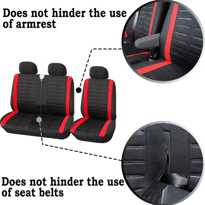 Van Seat Covers, Universal Fit Most Trucks Vans Lorry Front Seat Covers, Single & Double Car Seat Covers for Single Driver and Double Passenger Seat 2+1 Seat Covers, 3D Stripe Print (Red)