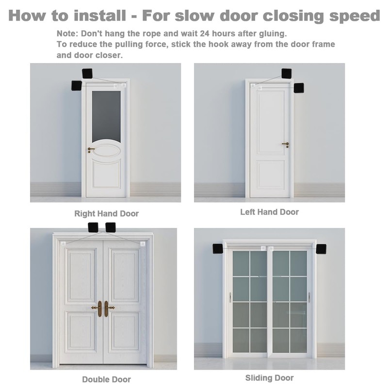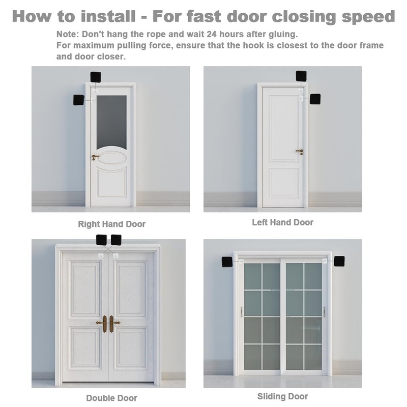 • Easy to install, just stick the two pieces on - no screwing and no holes in the door and wall.