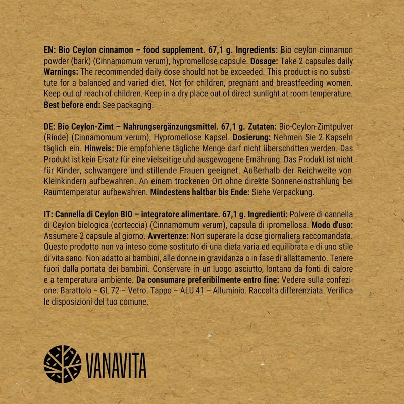 VanaVita VanaVita BIO Ceylon Zimt Kapseln - 1200 mg echter Ceylon Zimt Extrak...