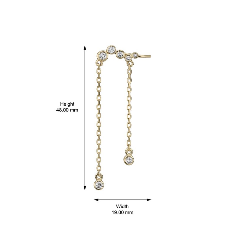 - MEASURES: This CZ stone earring chain drop measures 43*19 MM. The white CZ stones have varied sizes: 1.25MM, 1.60MM, 2.00MM, 2.25MM, and 2.50MM.