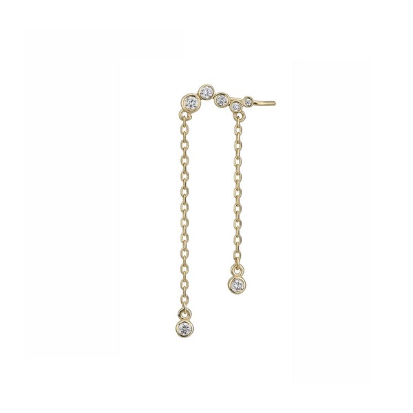 Vanbelle Gold-Plated Contemporary Ear Climber with Dangling Chain Earrings with White CZ Stone Studding for Womens