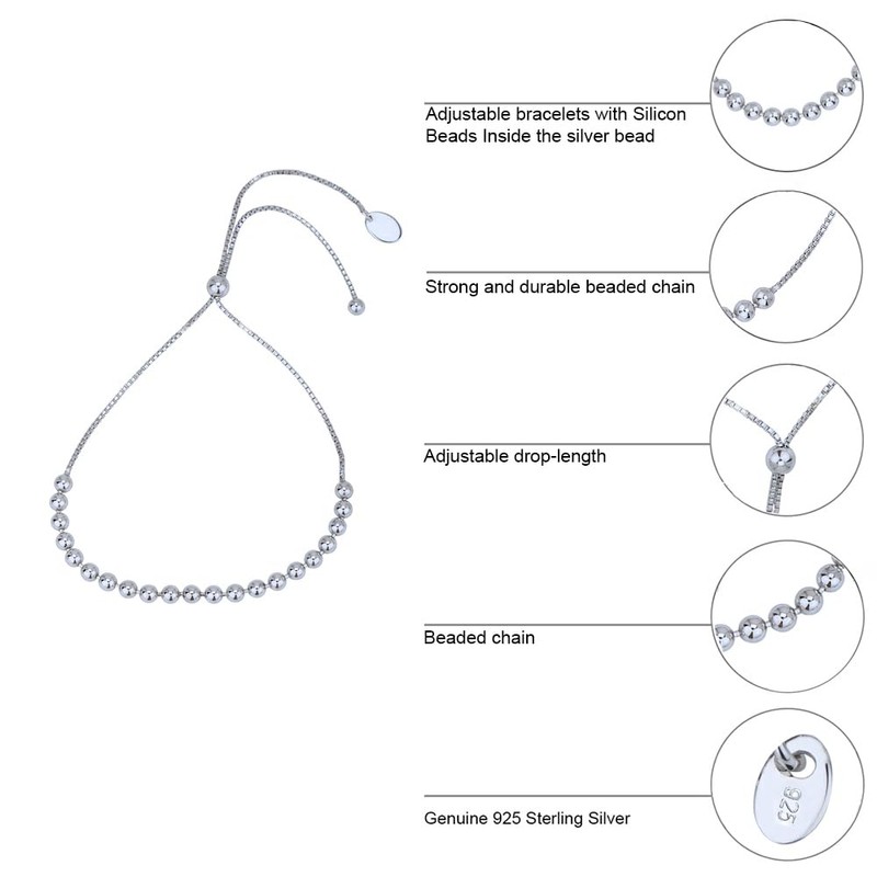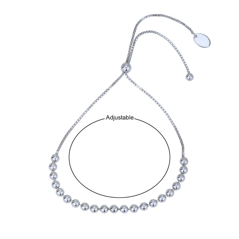 Vanbelle Sterling Silver jewelry - Rhodium Plated with 925 stamp - High Polished Beaded chain - Adjustable Bolo Bracelet - Elegant design for Women - Party Collection