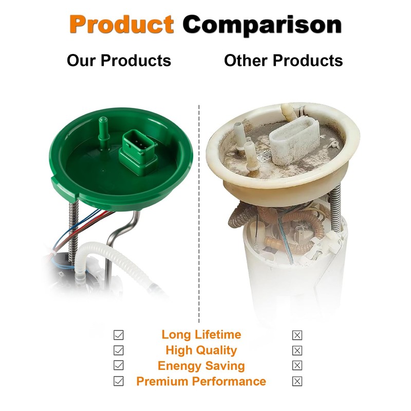- [Enhance performance]: High-quality replacement part fuel pumps can improve your vehicle's performance, enhancing acceleration, reducing hesitation, vibration and noises, etc. Each fuel pump module assembly undergoes thorough testing to ensure reliable operation and consistent fuel delivery.