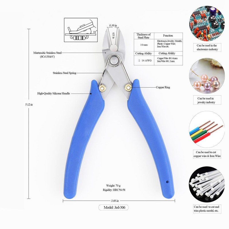 - Widely Used in Industry and Household - This cutter is widely used in electronics, jewelry, crafts, models, repair, soldering, etc. It can be used to cut above 14 AWG copper wire, iron wire, electronic components, plastic, models, etc. It is also very handy for multiple household use.