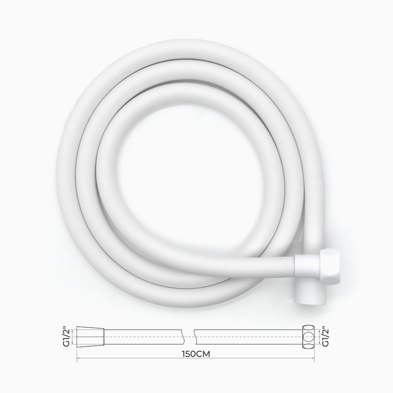 Vancoco PVC Shower Hose 1.5 m G1/2 Connection White with Filter Stainless Steel Mesh Double Twist Protection Kink and Tear Resistant