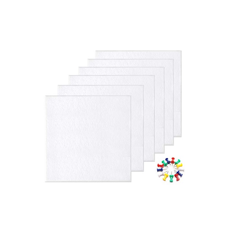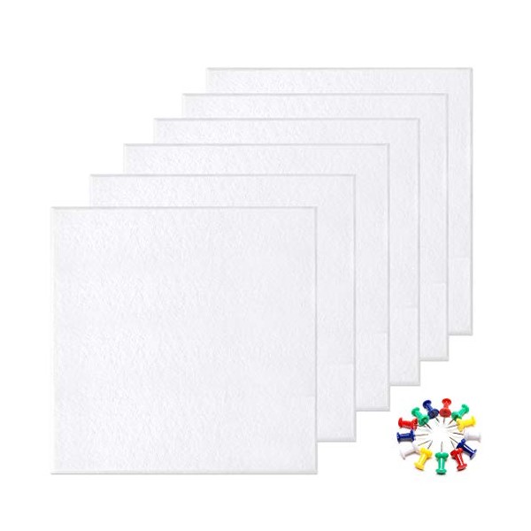 VANCORE 11.8" x 11.8" Felt Bulletin Board with 30 Push Pins, Large Square Pinboard Tiles for Photos,Notes,Letter,Memo, 6 Pack Wall Boards for Office (White)
