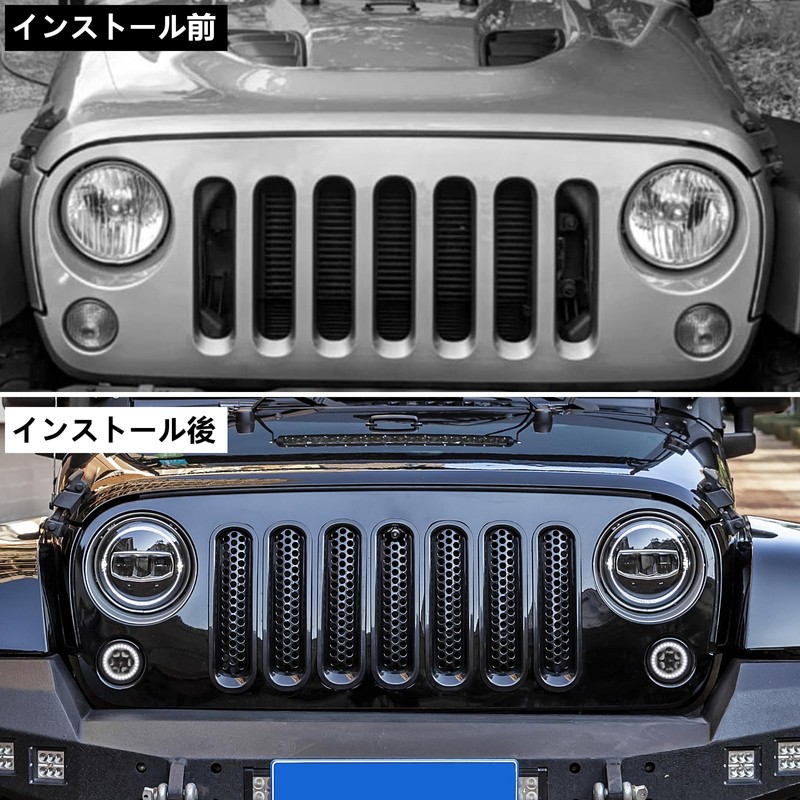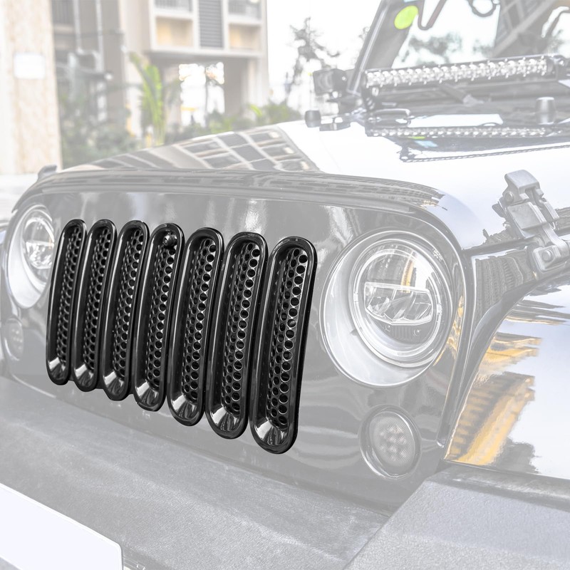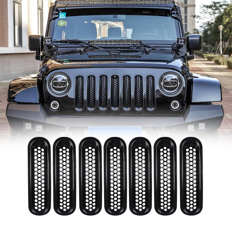 【Package Contents】 Wrangler Exterior Custom Black Front Mesh Grille Cover Set of 7 We provide 1 year warranty and friendly after-sales service.