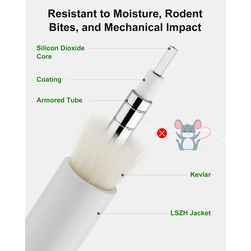 ●Durable Fiber Optic Cable Design: The 3.0mm LSZH armored jacket resists compression, abrasion, and heat—ideal for tight and high-traffic spaces.