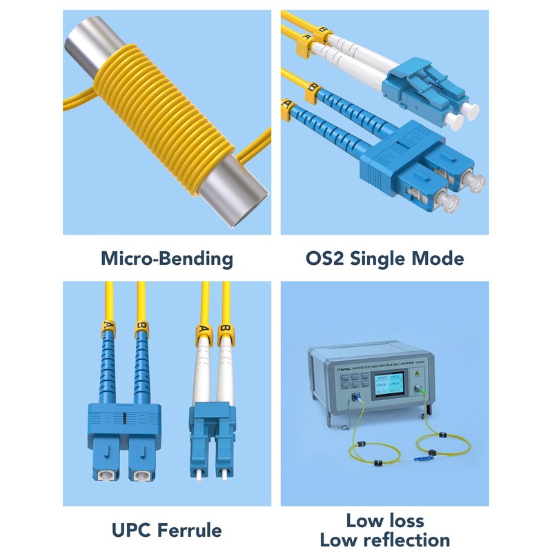 - ** Single-Mode Excellence: This single mode fiber cable is specifically designed for single mode fiber applications, ensuring optimal signal quality and minimal signal loss over long distances.
