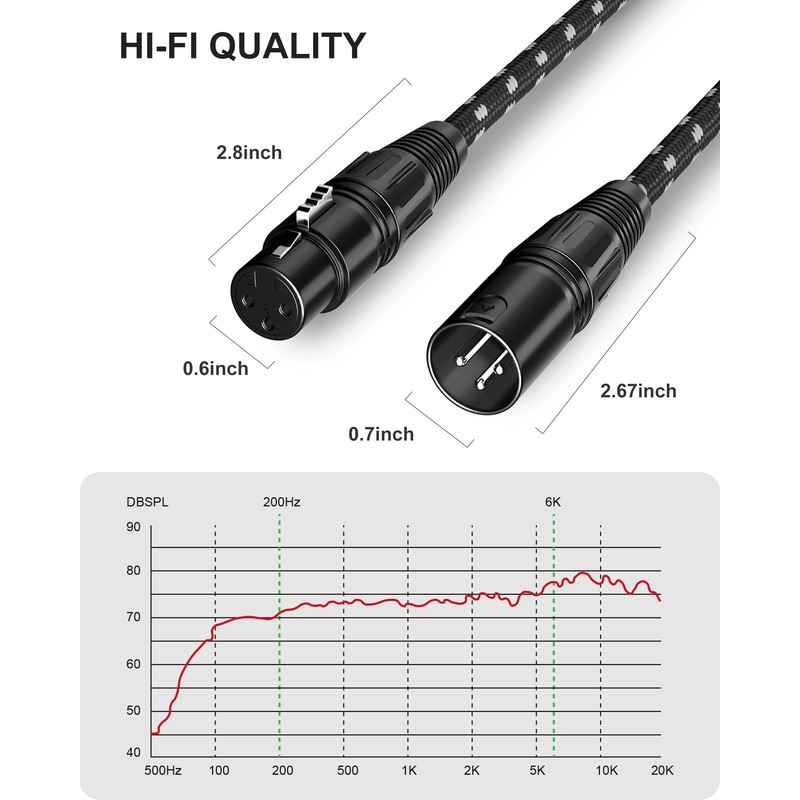 - 【Multiple Length Options】Please note that xlr cables mic cord length is measured from XLR connector to XLR connector, length option: 6inch ,1ft, 2ft, 3ft, 6ft, 10ft, 15ft, 20ft, 25ft, 30ft, 35ft, 50ft, 75ft, 100ft