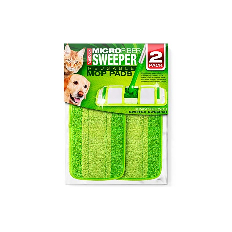 VanDuck Reusable Mop Pads Compatible with Swiffer Sweeper Mops (2-Pack) - Washable Microfiber Mop Pads for Wet & Dry Use - All Purpose Floor Mopping and Cleaning Product