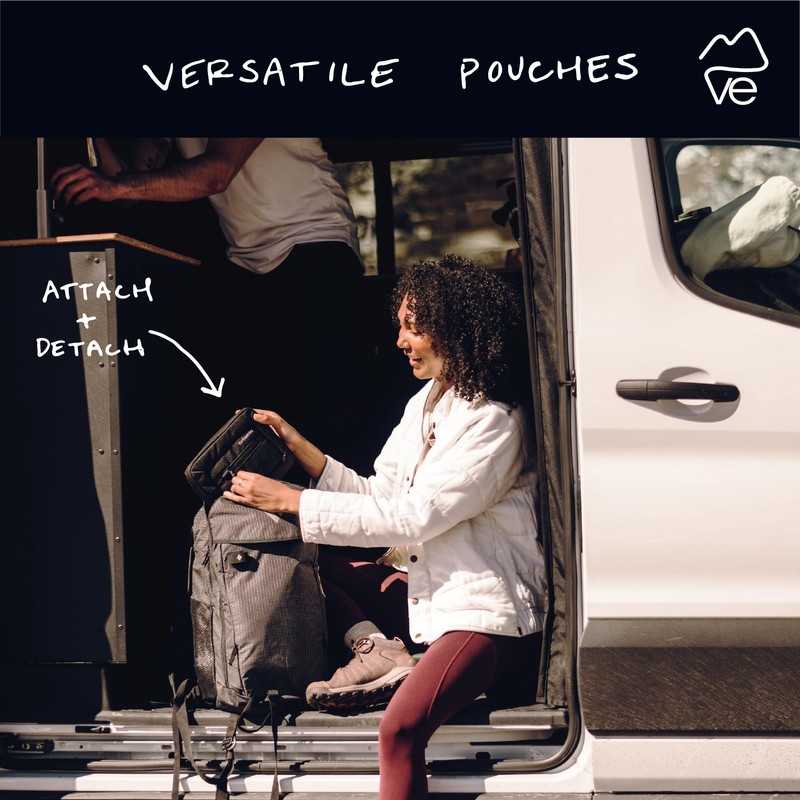- [Overview] This removable modular storage pouch is ideal for storing equipment and gear of all sizes - perfect for van lifers needing versatile yet durable storage space.