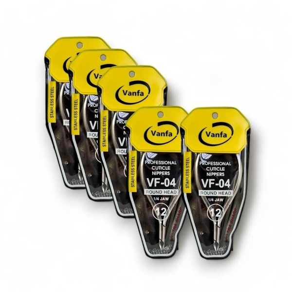 Vanfa Cuticle Nippers, Cuticle Trimmer, Professional Cuticle Cutter - Extremely Sharp - Stainless Steel - Round Head - Single Spring - VF04 Jaw #12 (Pack of 5)