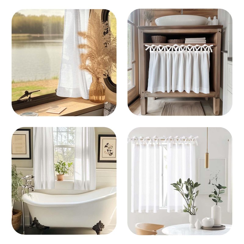 - SIMPLICITY MEETS CREATIVITY These charming little curtains perfectly match the farmhouse style or cottagecore design. They're also great for RVs, basements, or a smart way to hide clutter under sinks or in closets