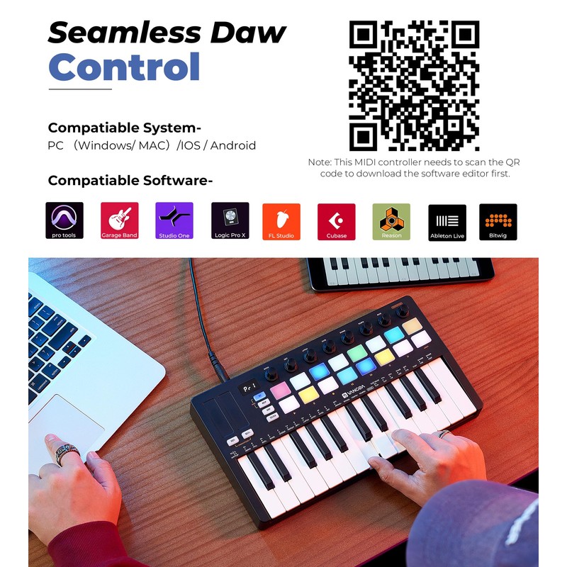 - Improvise Anywhere with Seamless Connectivity- Seamlessly connect to your favorite Digital Audio Workstations (DAWs) such as Ableton Live, FL Studio, Cubase, Logic Pro X, Bitwig, Reason, and Studio One. Enjoy dynamic pitch and modulation control for real-time music expression. This MIDI keyboard controller is compatible with Windows, Mac, Android, and iOS devices, ensuring versatility in your music production endeavors.