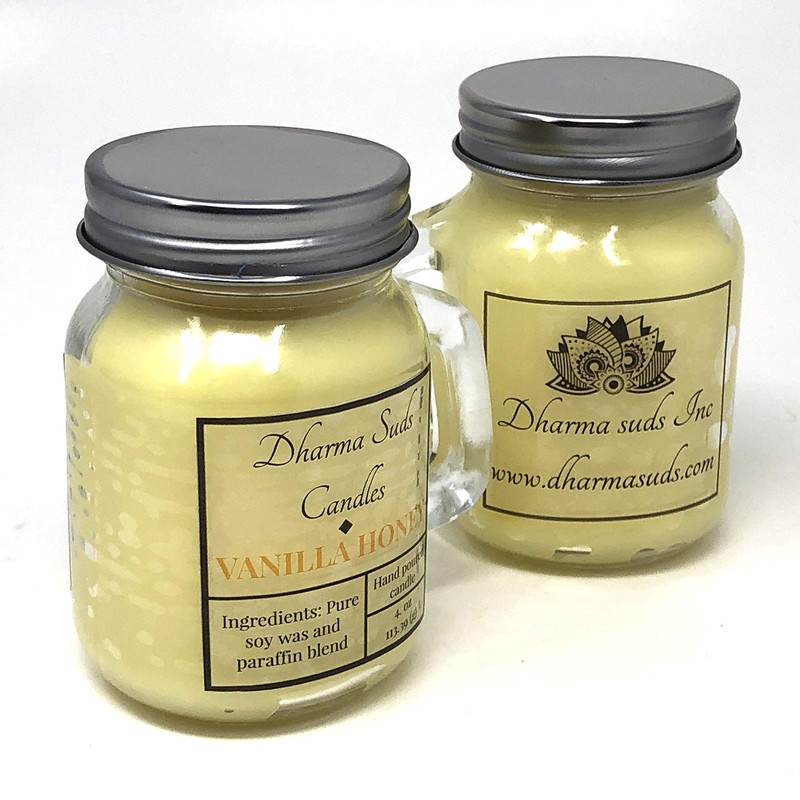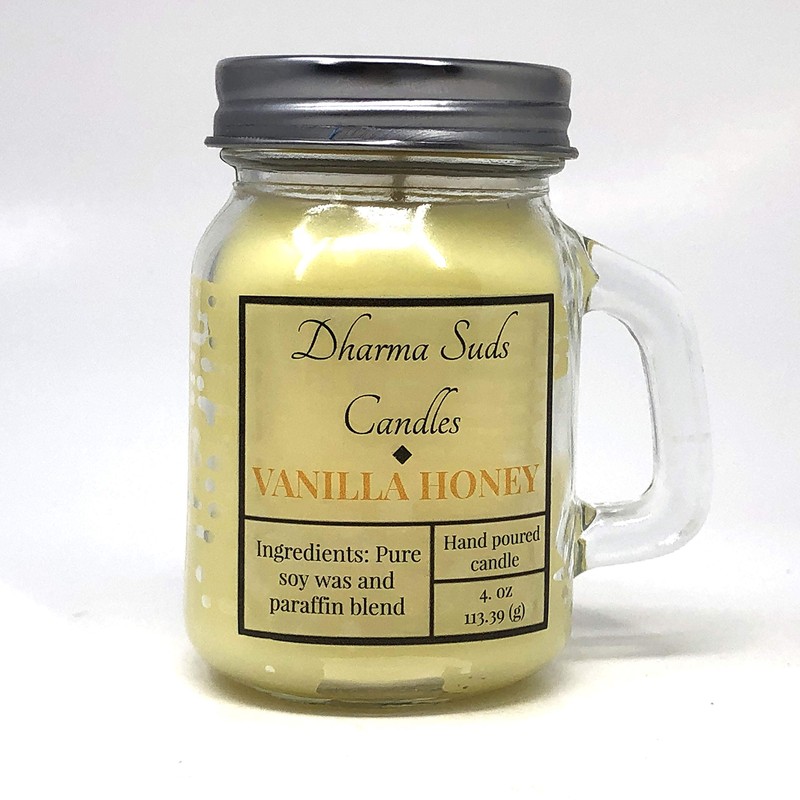 Vanilla and Honey scented candle 4 oz mini mason glass Jar with handle and screw cap, sweet comforting scent of Vanilla and Honey