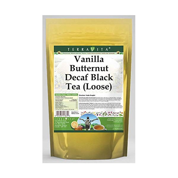 Our Vanilla Butternut Decaf Black Tea is a wonderful flavored decaffeinated Black tea that you will enjoy the simple and elegant taste of! - Ingredients: Decaf Black tea and natural vanilla butter nut flavor. - Hot tea brewing method: Bring freshly drawn cold water to a rolling boil. Place 1 teaspoon of tea for each desired cup into the teapot. Pour the boiling water into the pot, cover and let steep for 2-4 minutes. Strain and pour into your cup; add milk and natural sweeteners to taste. - Iced tea brewing method: (to make 1 liter/quart): Place 5 teaspoons of tea into a teapot or heat resistant pitcher. Pour 1 1/4 cups of freshly boiled water over the tea itself. Steep for 5 minutes. Fill a serving pitcher with 1/4 cold water. Strain and pour the tea into the serving pitcher Add ice and top-up with cold water. Sweeten and garnish to taste. - TerraVita is an exclusive line of premium-quality, natural source products that use only the finest, purest and most potent ingredients found around the world. TerraVita is hallmarked by the highest possible standards of purity, potency, stability and freshness. All of our products are prepared with the highest elements of quality control, from raw materials through the entire manufacturing process, up to and including the moment that the bottles or bags are sealed for freshness and shipped out to you. Our highest possible standards are certified by independent laboratories and backed by our personal guarantee. - TerraVita exists to meet and ensure your family's health and wellness without the harmful effects or chemicals and prescription medications. We strive to make all of our products affordable and reliable and are constantly searching the market to maintain our affordability and to look for new ways to serve you and the on