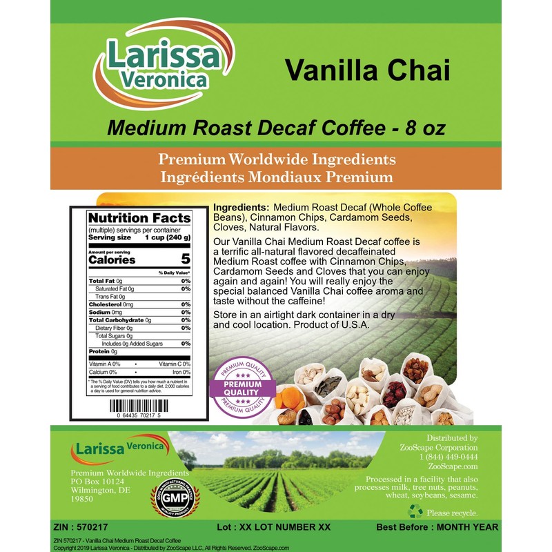 Vanilla Chai Medium Roast Decaf Coffee (Gourmet, Naturally Flavored, Whole Coffee Beans) (8 oz, ZIN: 570217) - 2 Pack