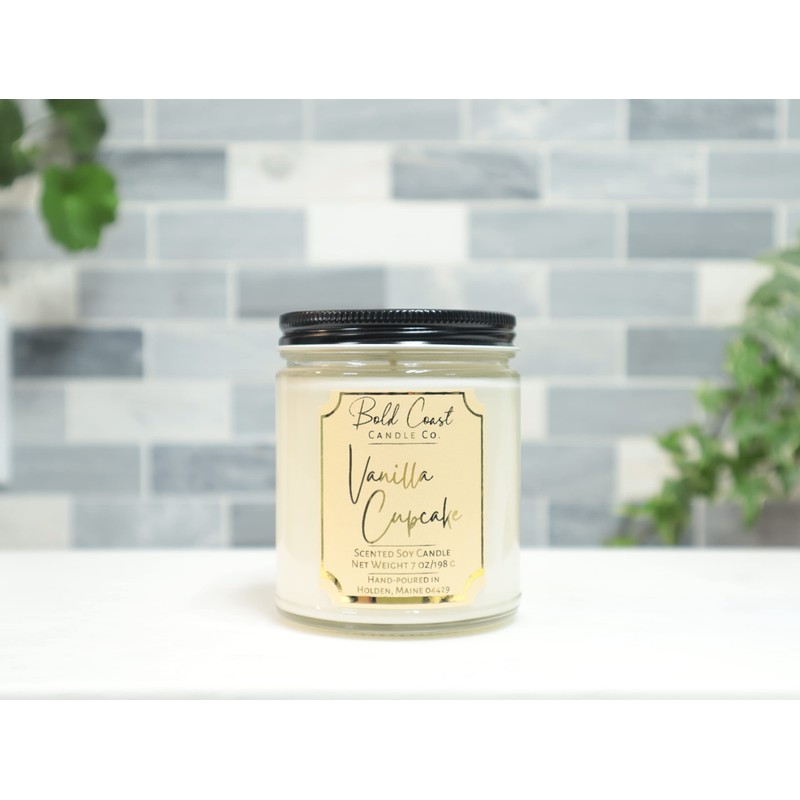 Vanilla Cupcake Scented Soy Wax Candle, 7 oz Candle, 60+ Hour Burn Time, Highly Scented and Long Burning, Luxury Soy Candles Handmade in the USA