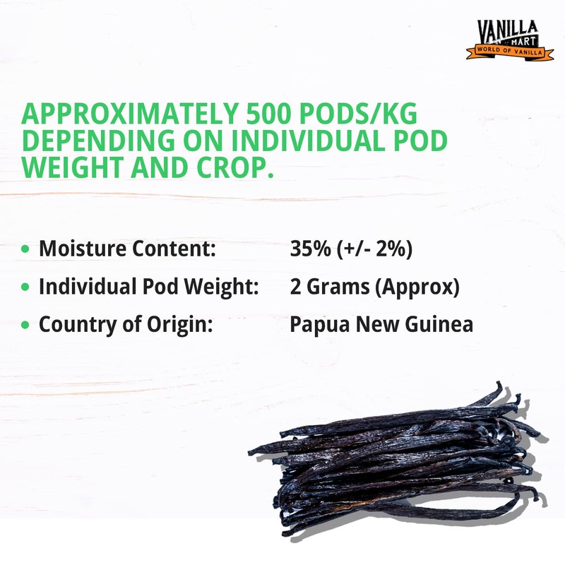 Vanilla Mart Vanilla Pods from Papua New Guinea (PNG) Grade A Beans Flowery Fruity Aroma (50 Pods)