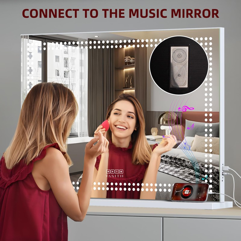 - BLUETOOTH SPEAKER: The makeup vanity mirror with lights is built-in 2 Bluetooth Speakers and a microphone, so you can listen to music or answer calls while doing your makeup, this smart makeup mirror will greatly enhance your overall experience