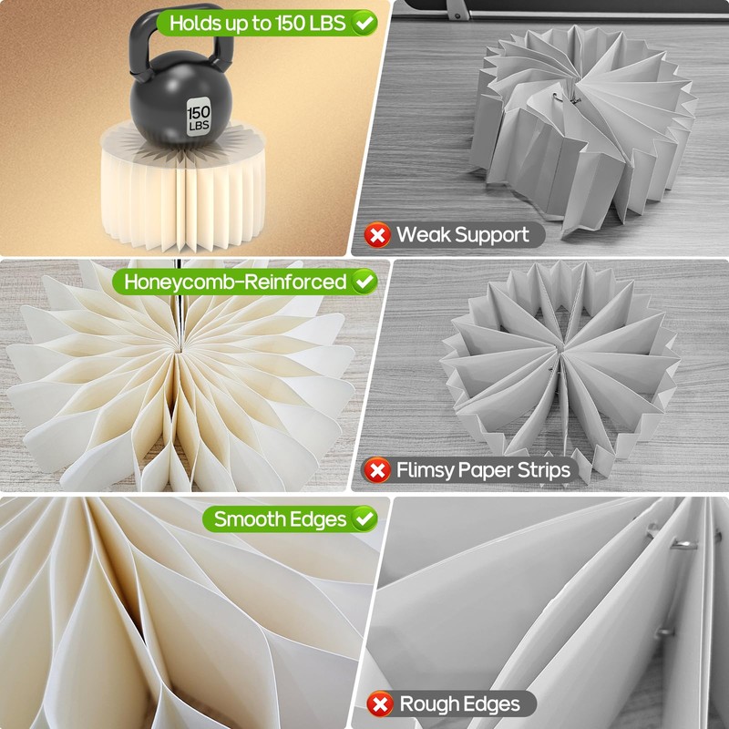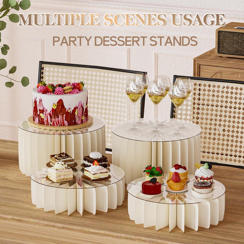 - High Weight CapacityEngineered with high-density honeycomb cardboard and a thick clear acrylic plate, these round food stands for display party support up to 150 lbs effortlessly. The robust construction ensures stable support for heavy platters and bowls, even when fully loaded