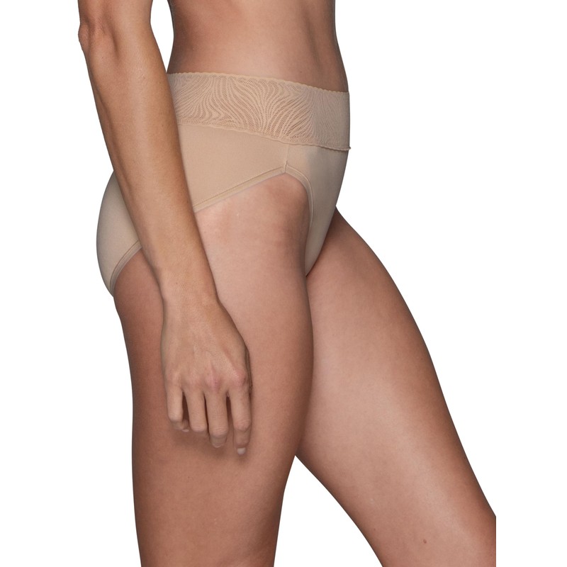 Vanity Fair Women's Effortless Panties for Everyday Wear, Buttery Soft Fabric & Lace, Hi Cut-Neutral